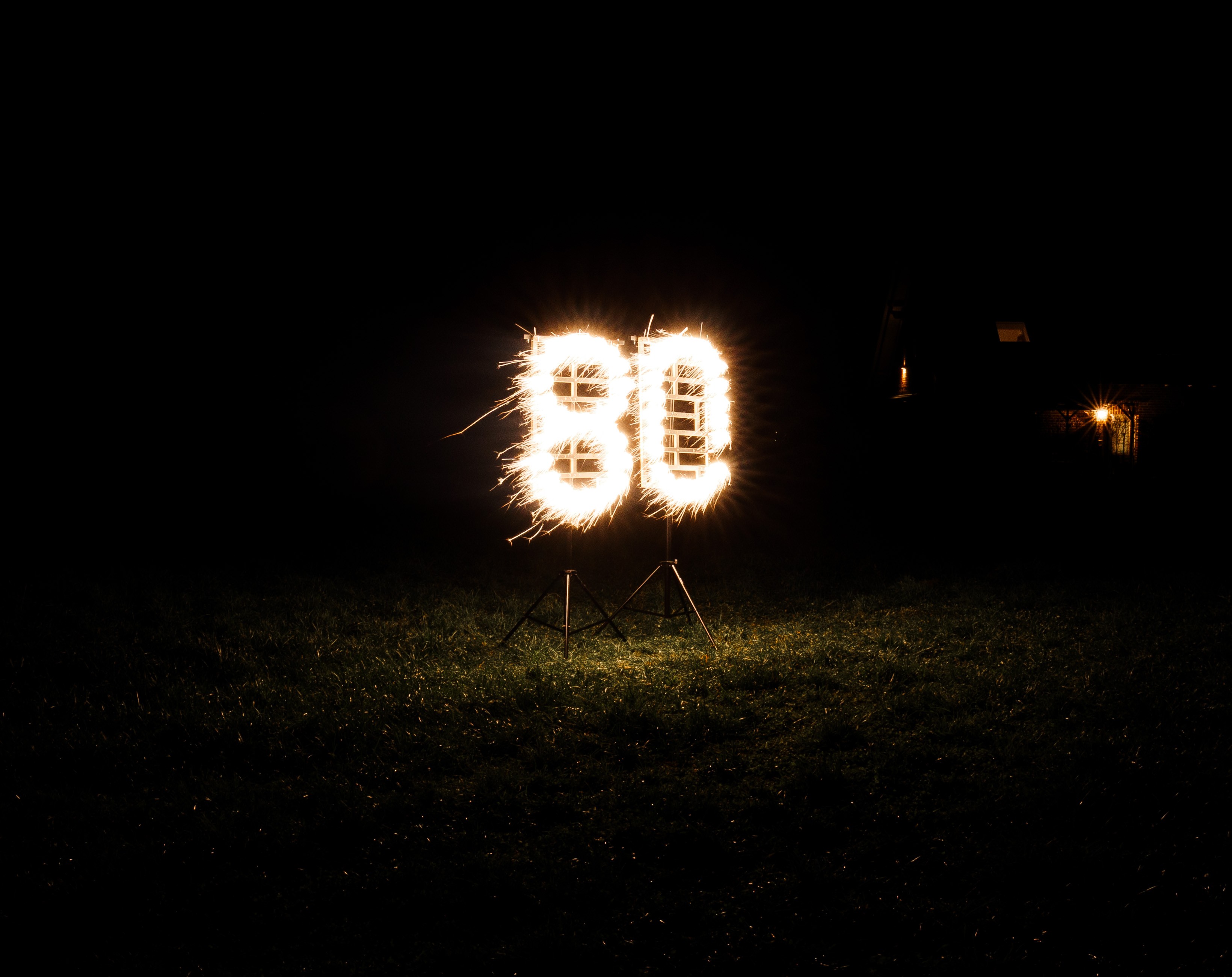 Lichterbild Auf dem Bild seht ihr eine 80 als Lichterbild. Möglich sind auch Smiley, Herzen, Ringe aber auch ganze Wörter